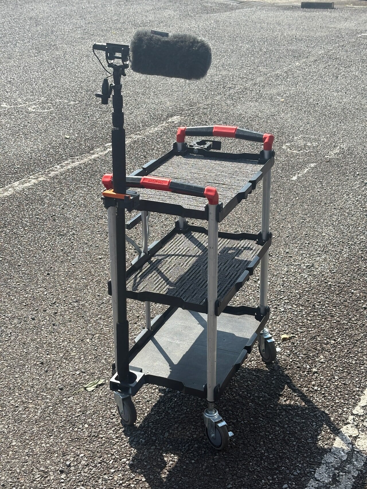 An adapter for easily attaching a boom and a light stand to Olympia carts