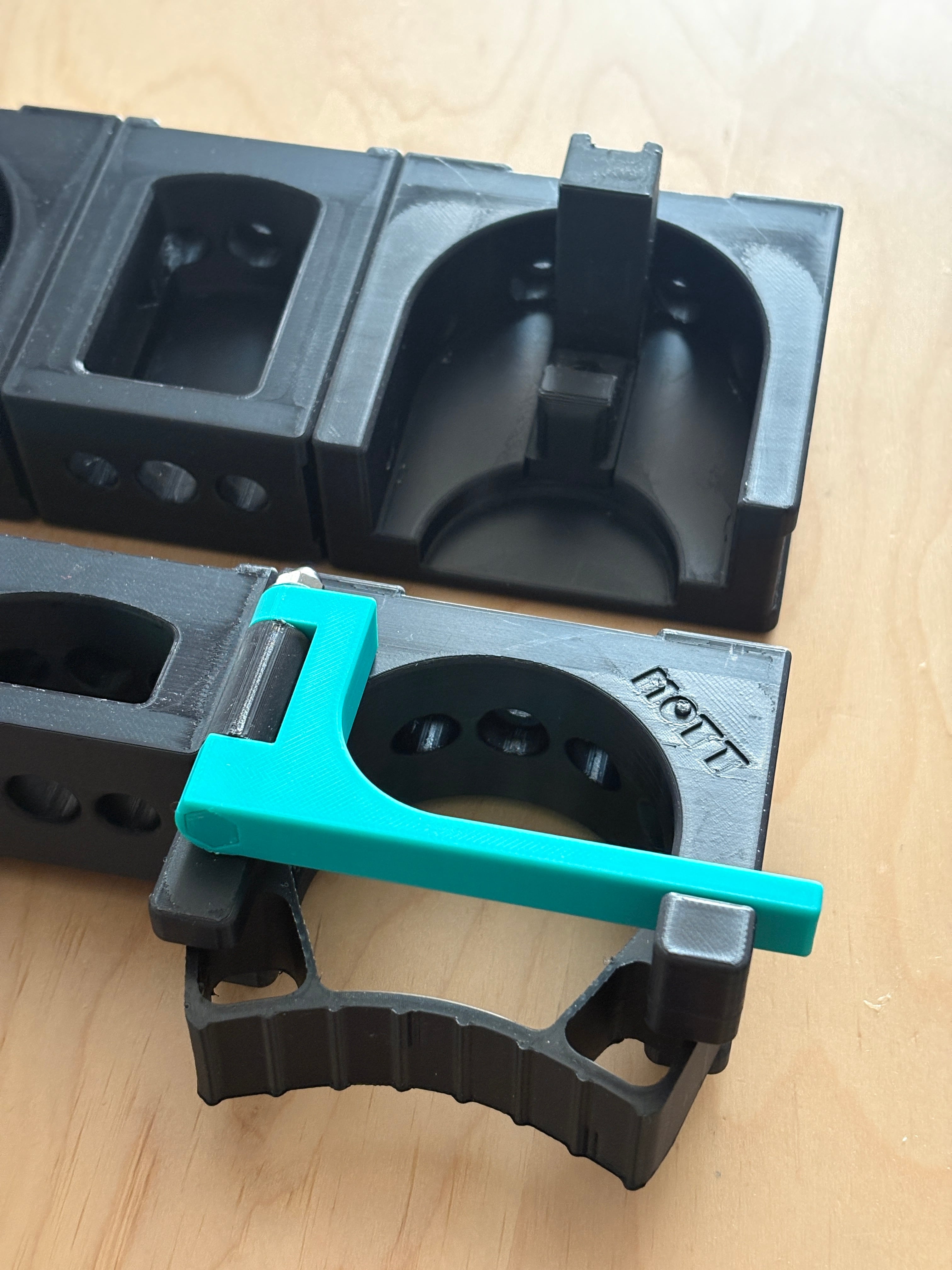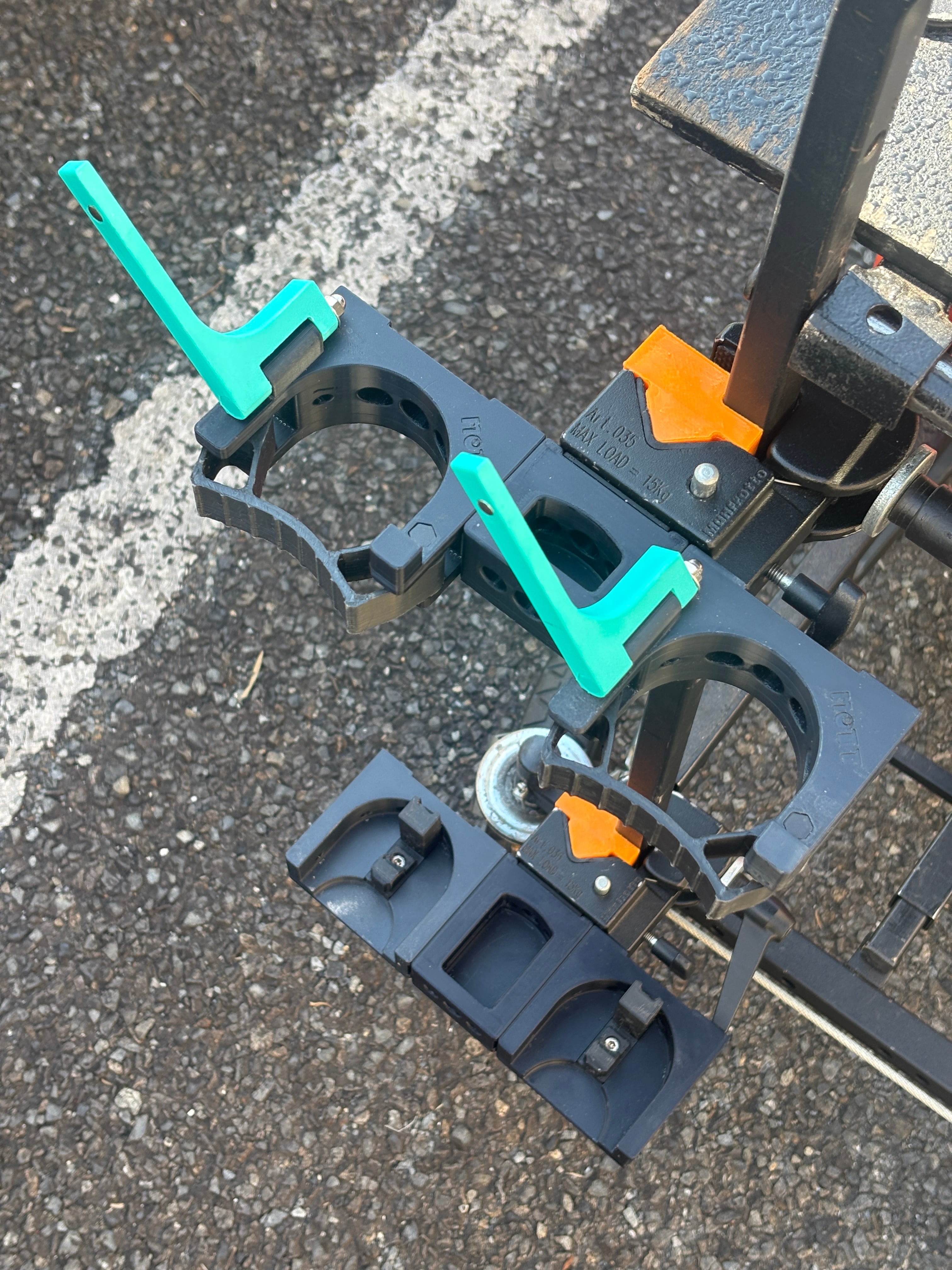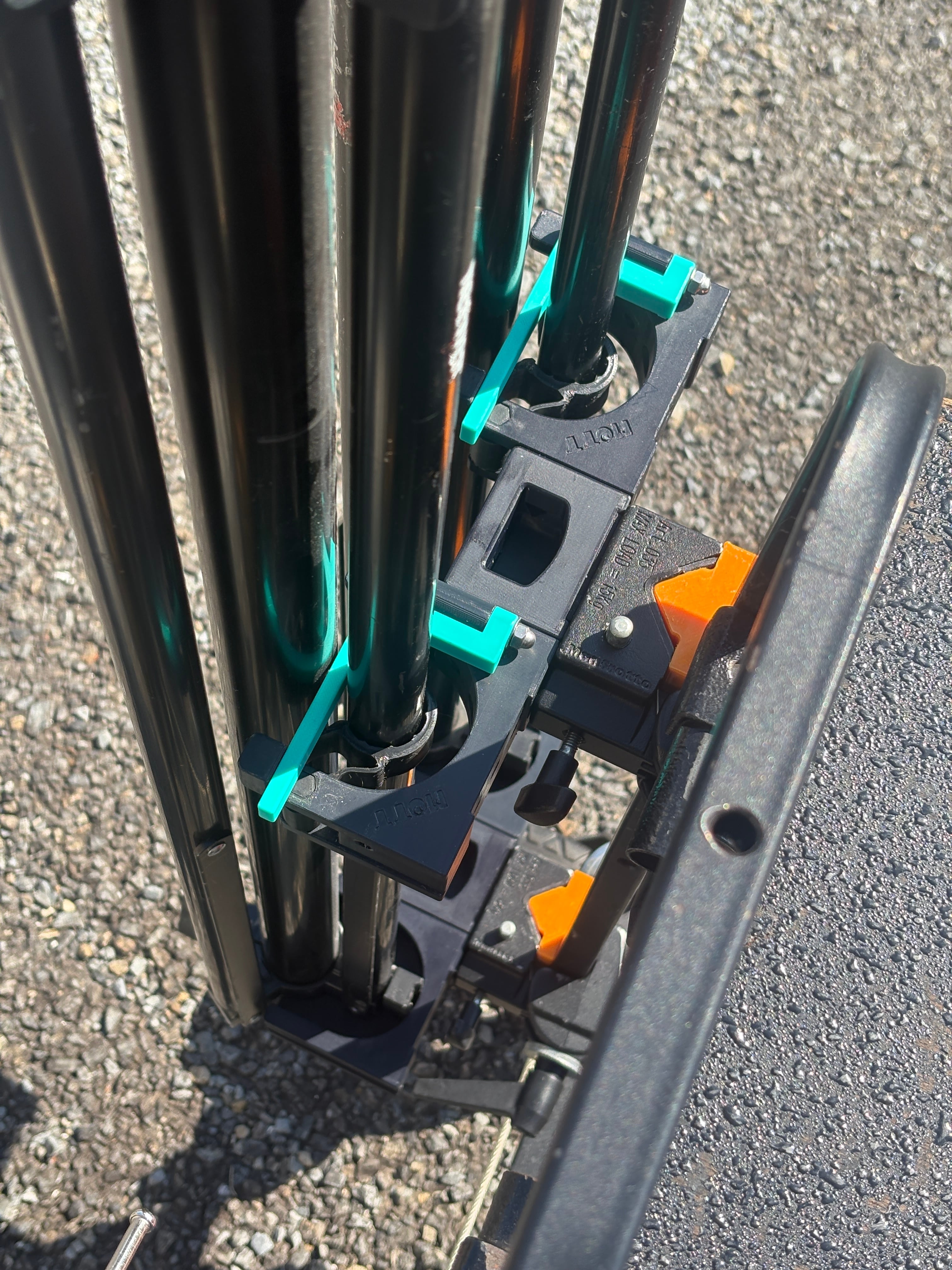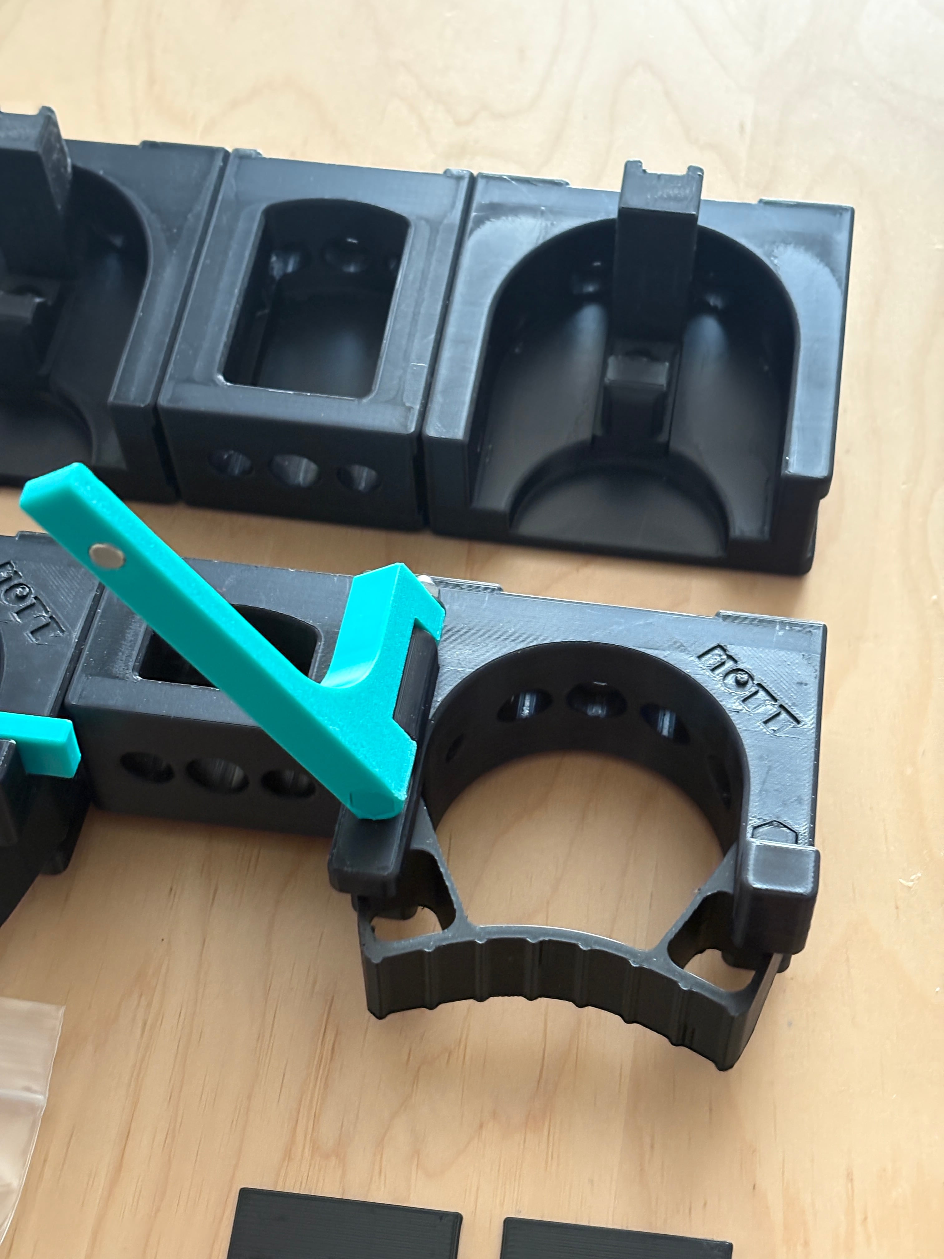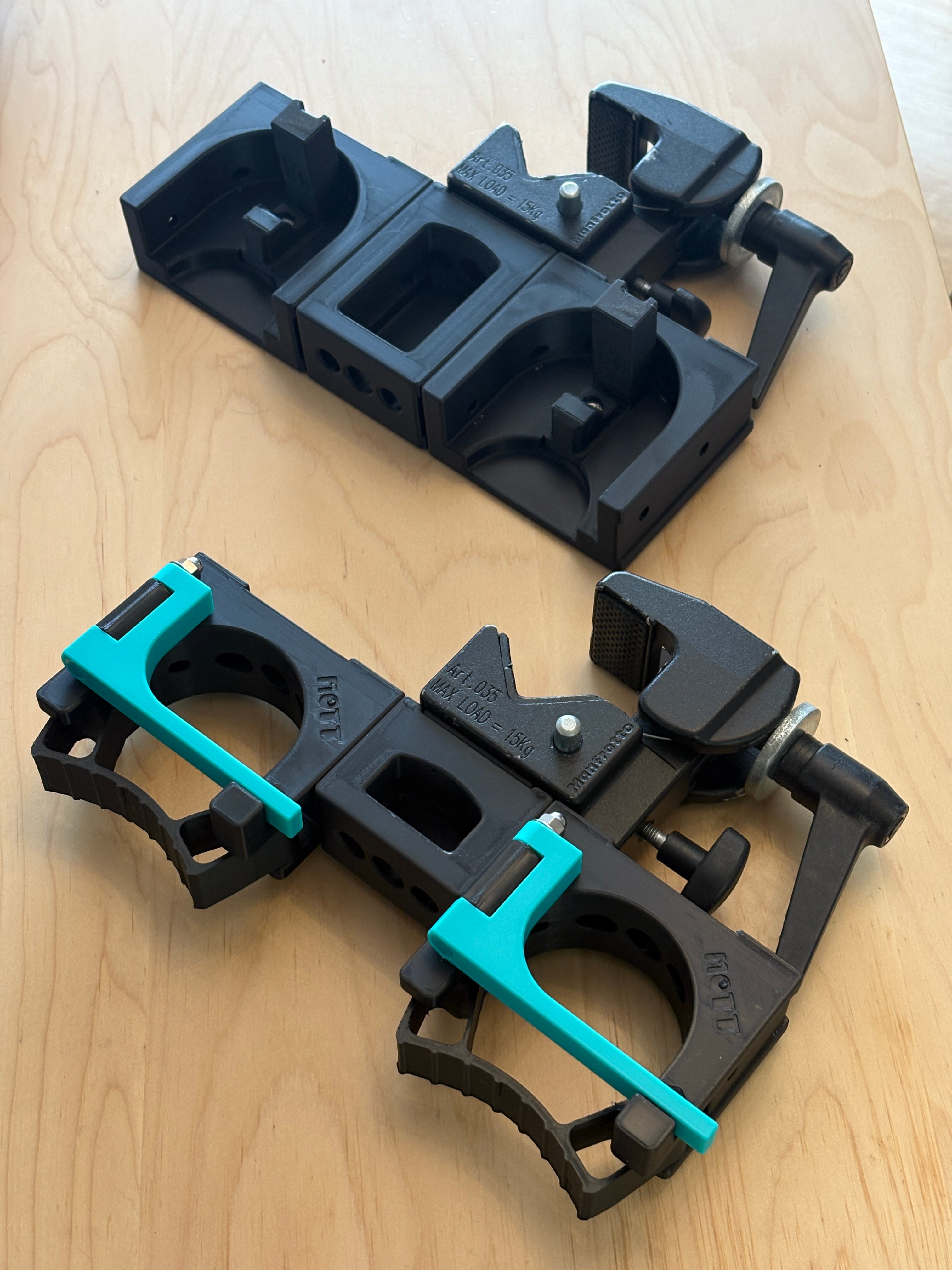2- upper “grip” with black clamp and Turquoise green safety lock