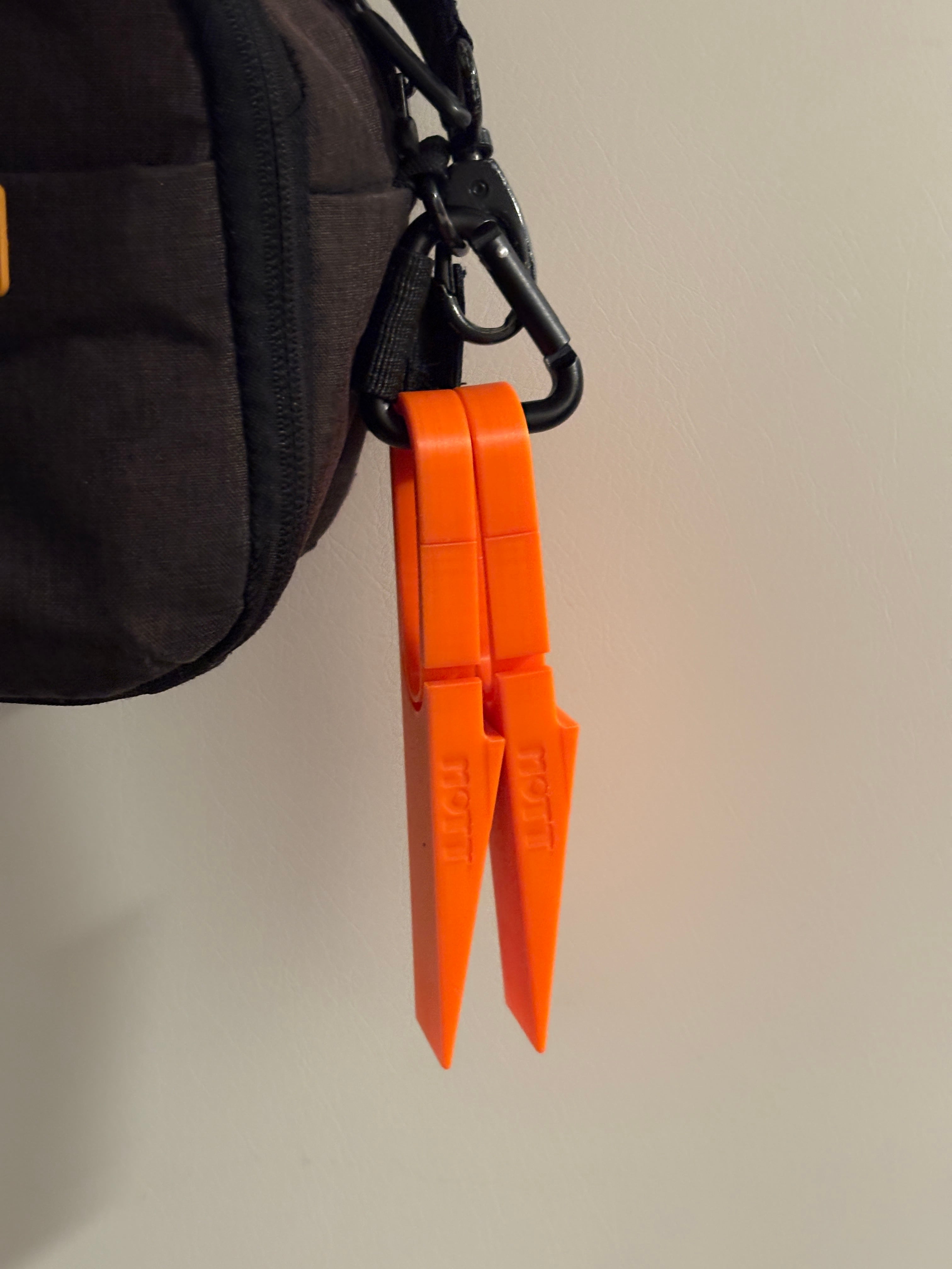 撮影現場のために設計された、カラビナ形状のくさびです。