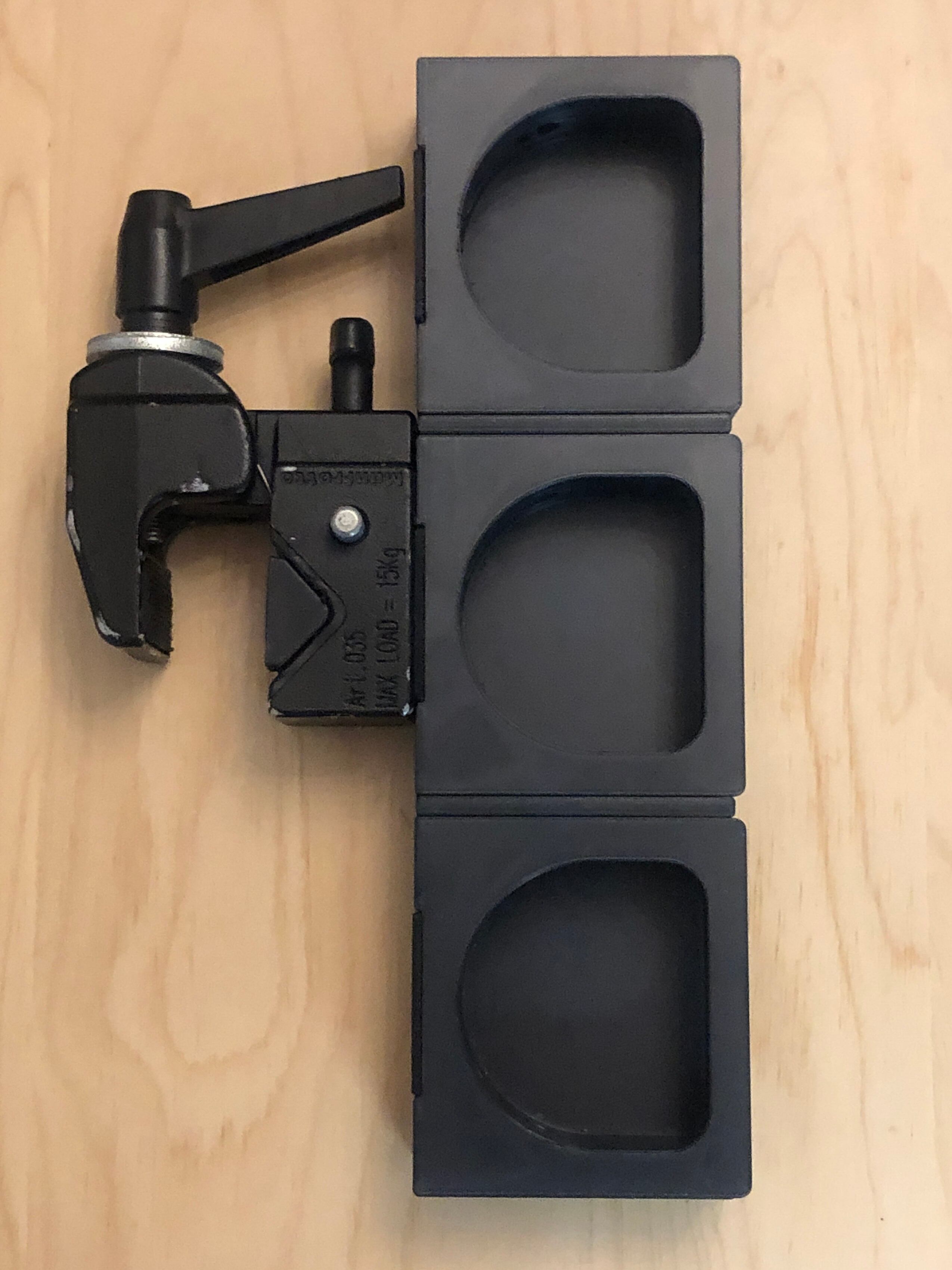 This is a combo that can hold three booms. It comes pre-assembled, so all you need to do is attach the super clamp.